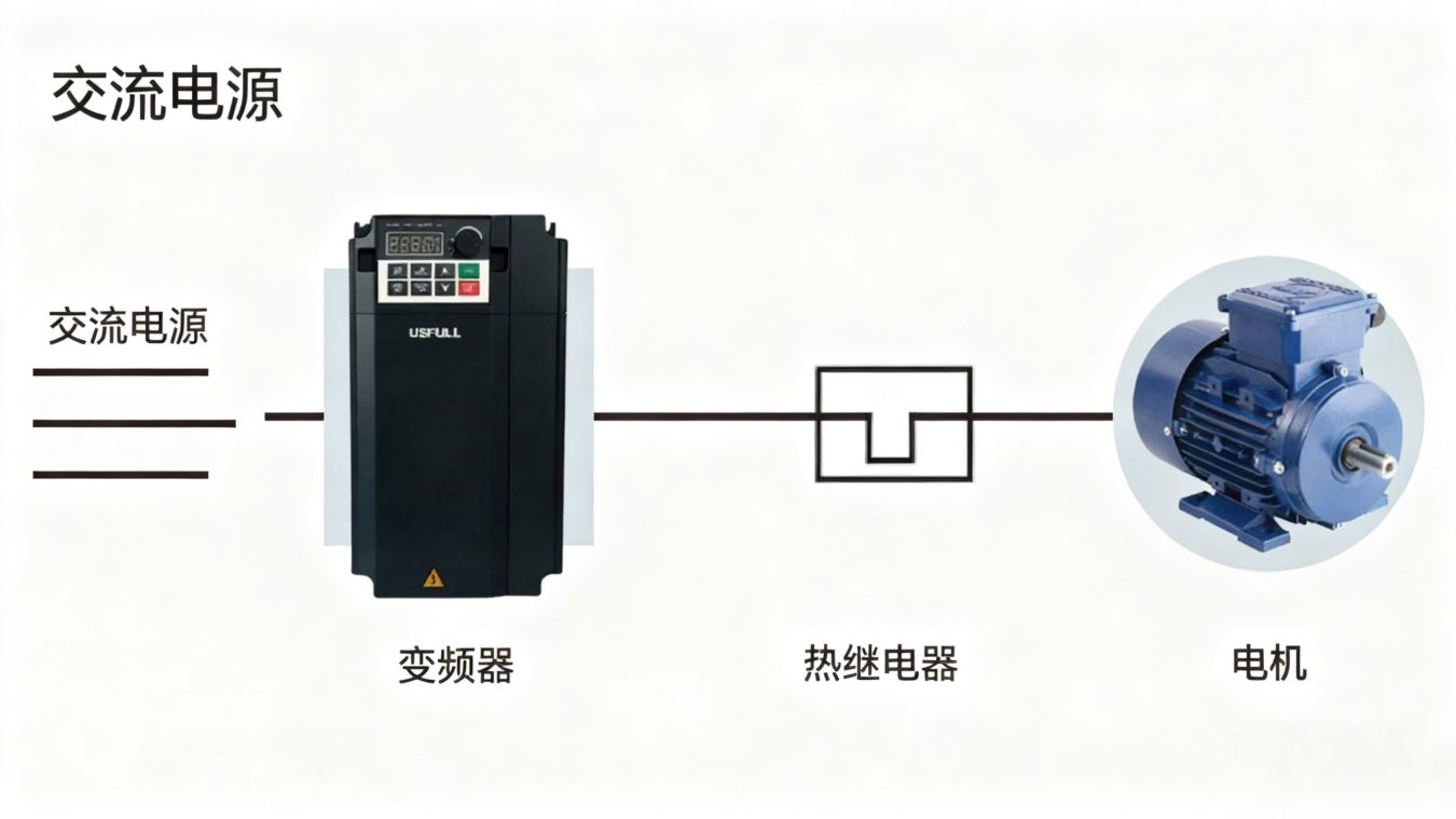 为防止电机过热损坏,需在每台电机的前端安装热继电器。与空气断路器不同,热继电器可通过检测过载导致的过大电流,在电机损坏前将其与变频器断开,实现更精准的过载保护。这种配置能避免变频器运行过程中主电路中断,确保每台电机均获得持续保护,保障整体系统的完整性。