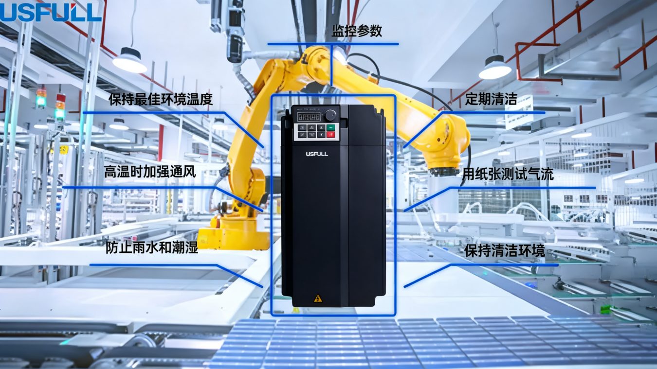 夏季或高温环境下,需加强变频器周边的通风散热。同时,确保进入变频器的空气不含过量粉尘、盐分、酸性物质、腐蚀性气体或爆炸性气体,避免部件腐蚀或短路。