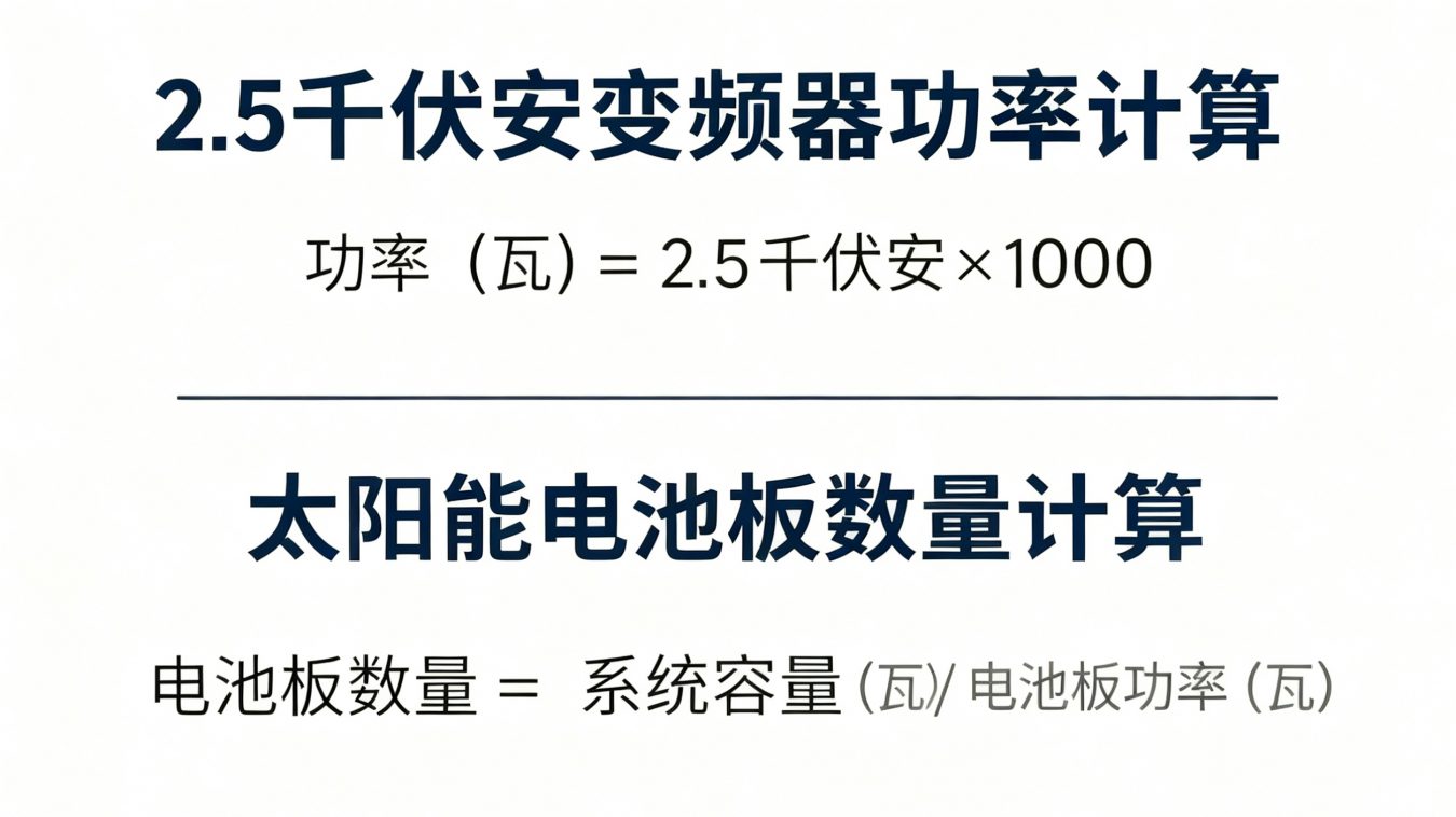 以下是一套计算 2.5kVA 变频器所需太阳能面板数量的简单方法: