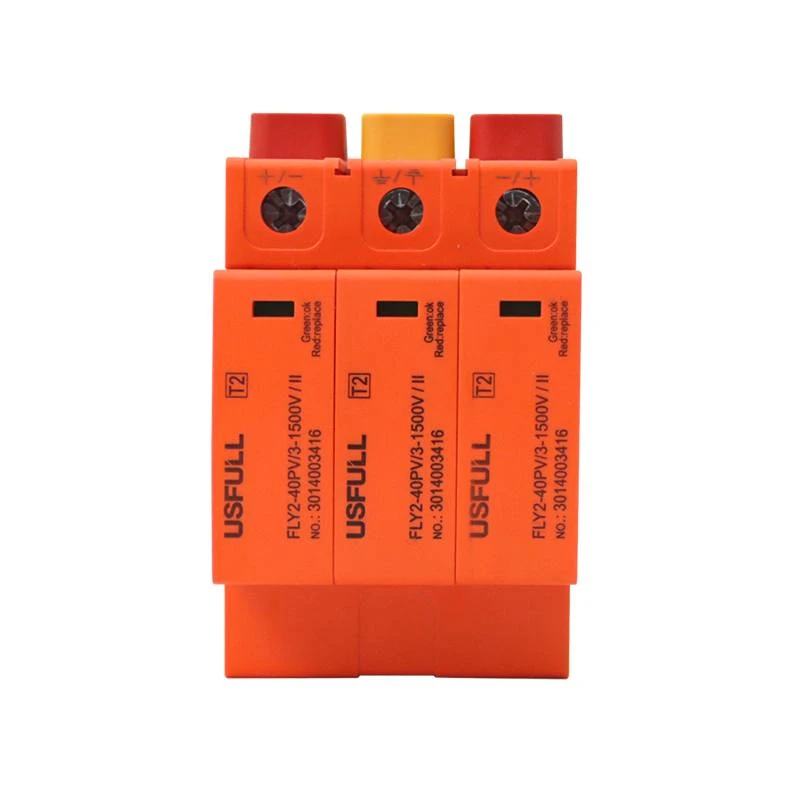 USFULL FLY2-40 DC SPD 太阳能直流浪涌保护器,专为光伏系统设计,可保护光伏系统和变频器免受雷电影响,从而保护电器设备。