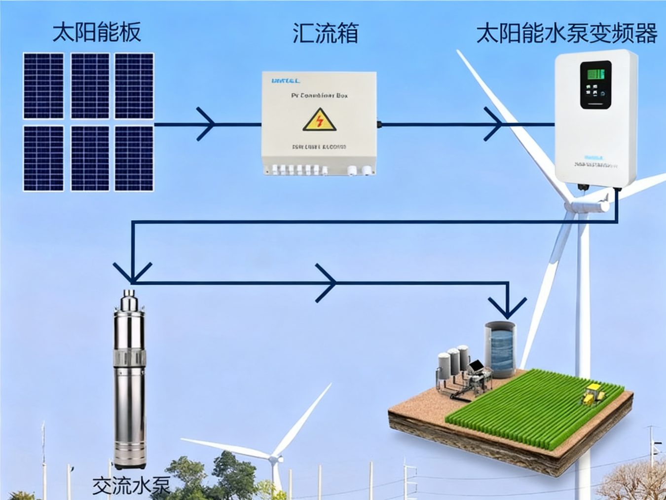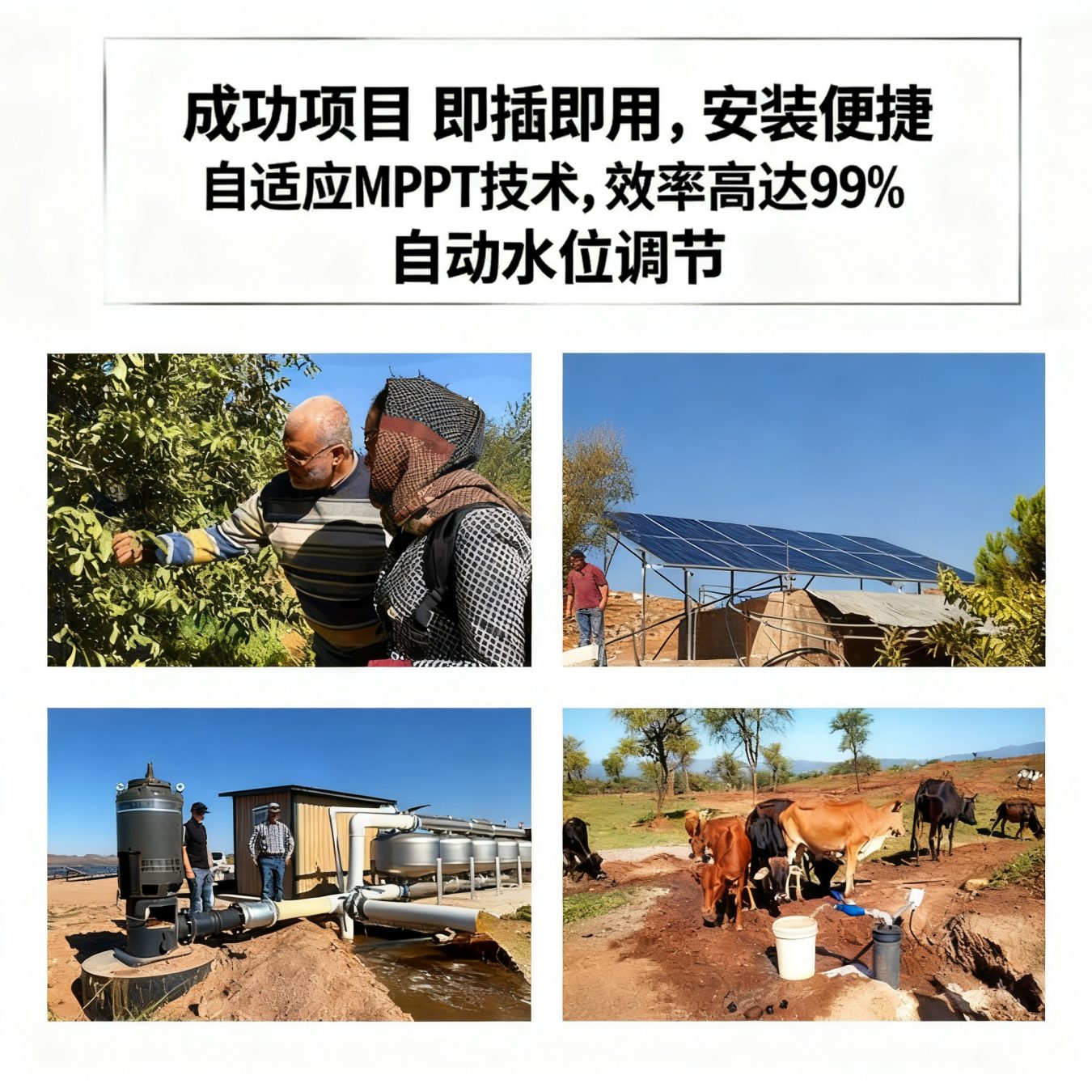 · 灵活输入电源:兼容太阳能直流电与电网交流电同时输入,通过交流输出控制各类水泵与电机。