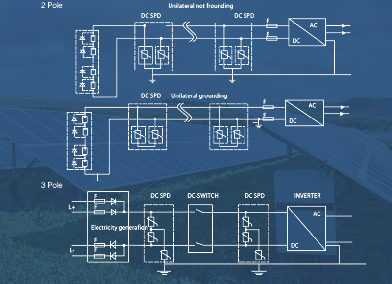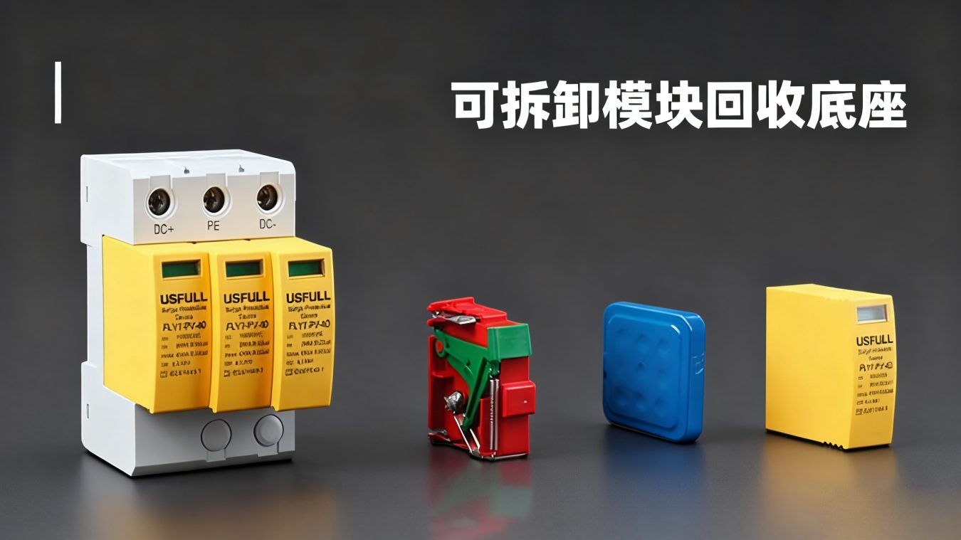 USFULL直流浪涌保护器,能有效抑制由雷电引发的过电压浪涌,为光伏发电系统和逆变器提供可靠保障,从而避免终端电气设备受损。