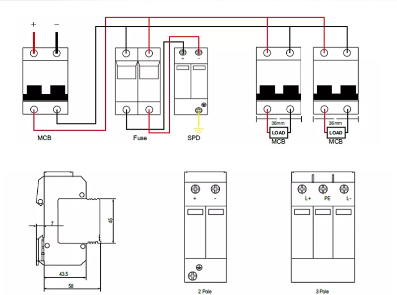当太阳能系统因雷击或其他原因产生浪涌过电压时,直流浪涌保护器(SPD)能在纳秒级内迅速反应,将浪涌电流导入大地,从而保护后续电气设备免受损毁,守护用电安全。