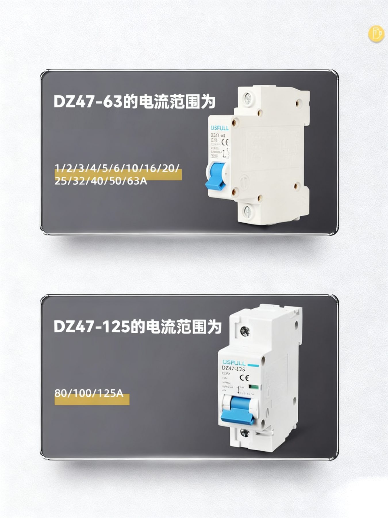 D 型脱扣曲线对应电流(安) | 1、2、3、4、5、6、10、16、20、25、32、40、50、63 |