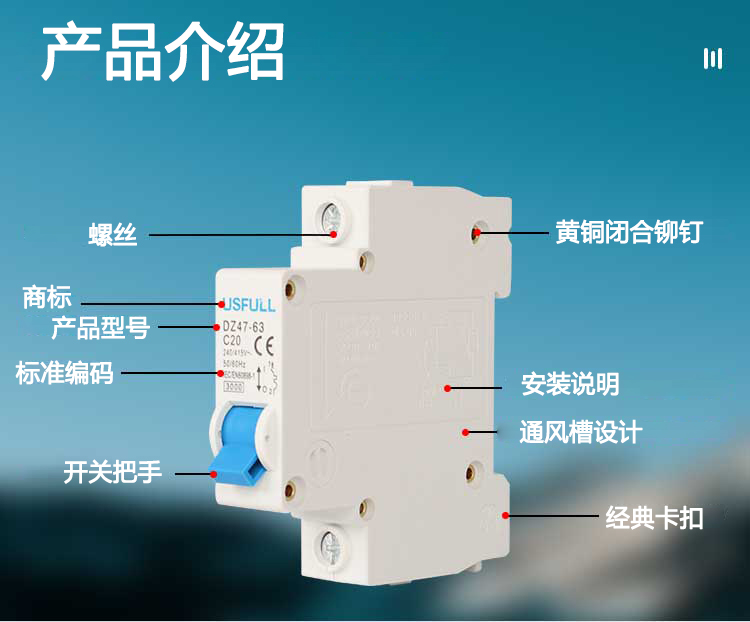 C 型脱扣曲线对应电流(安) | 1、2、3、4、5、6、10、16、20、25、32、40、50、63 |