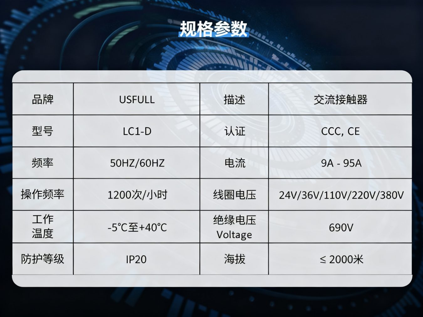 USFULL LC1D 系列交流接触器,广泛应用于工业控制与保护领域。