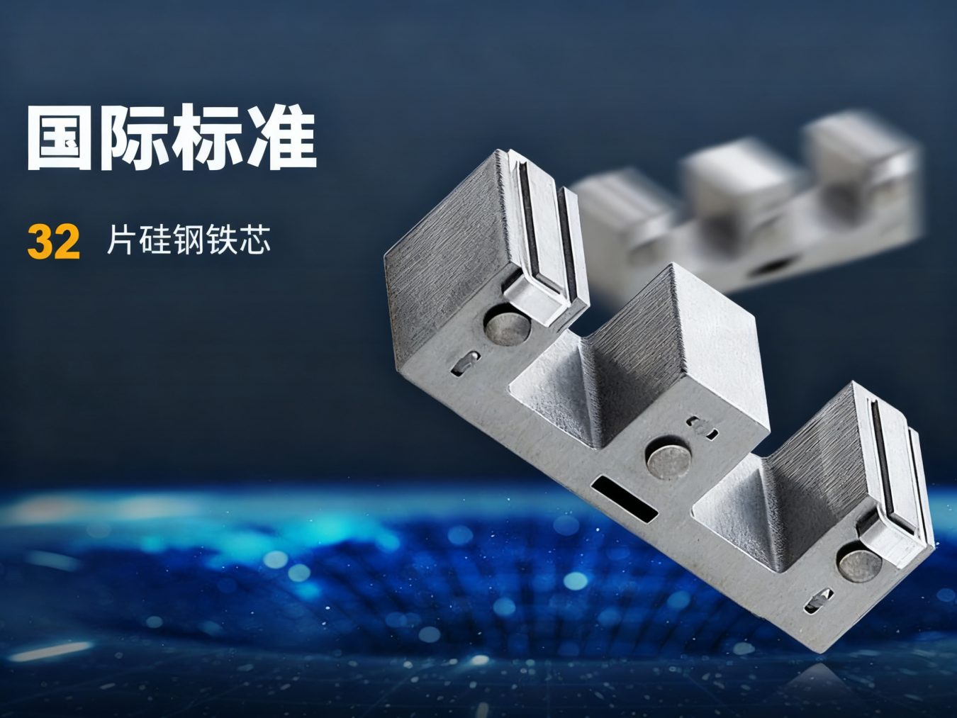 • 铁芯:动铁芯与静铁芯均采用高精度硅钢材料制成,由 32 片硅钢片叠压组成。