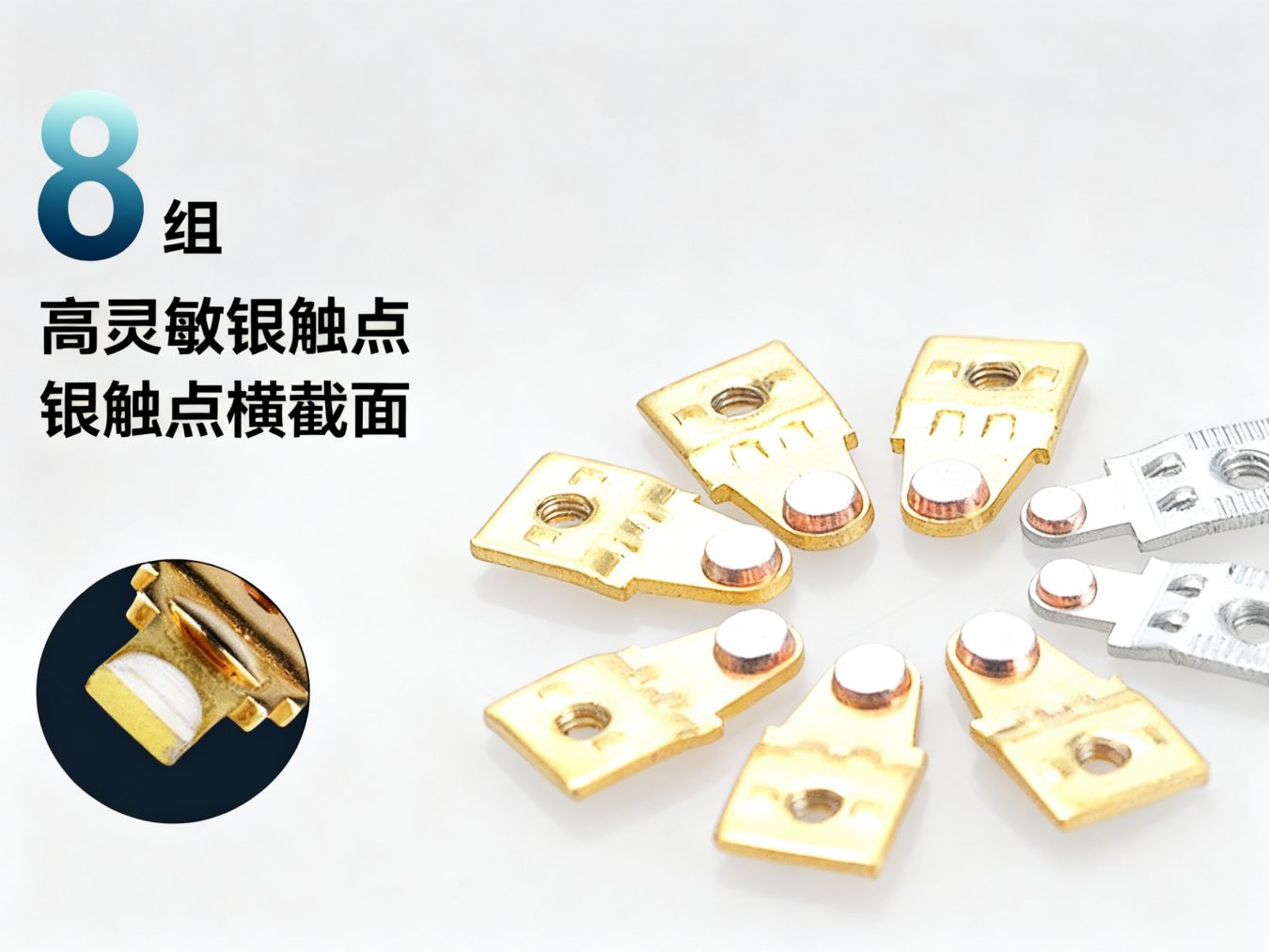 • 银触点:触点含银量达 85%,采用银合金材料制成,导电性能更优、通断响应更灵敏,且过载能力更强。